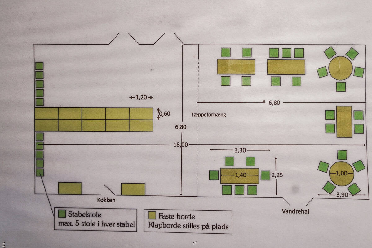 Main room: 18 m x 7 m